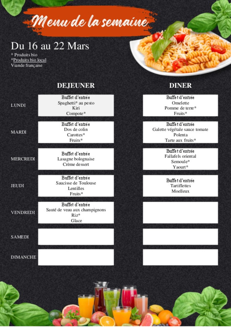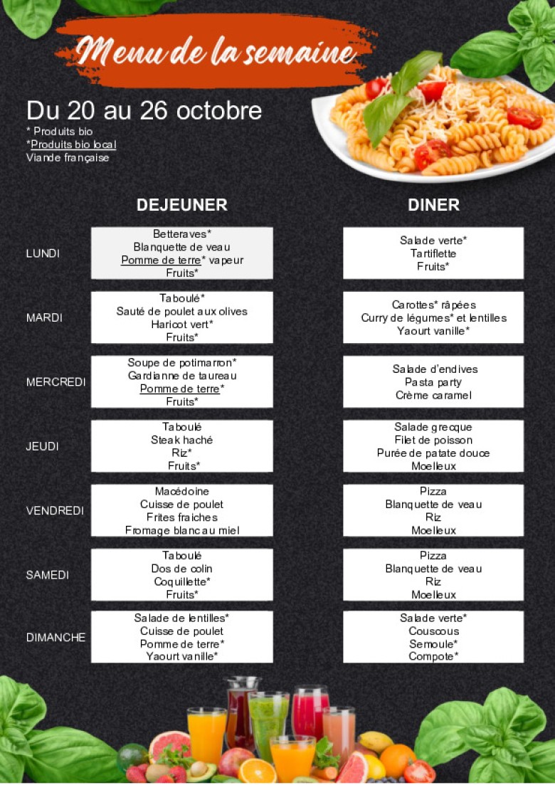 Le menu de la semaine